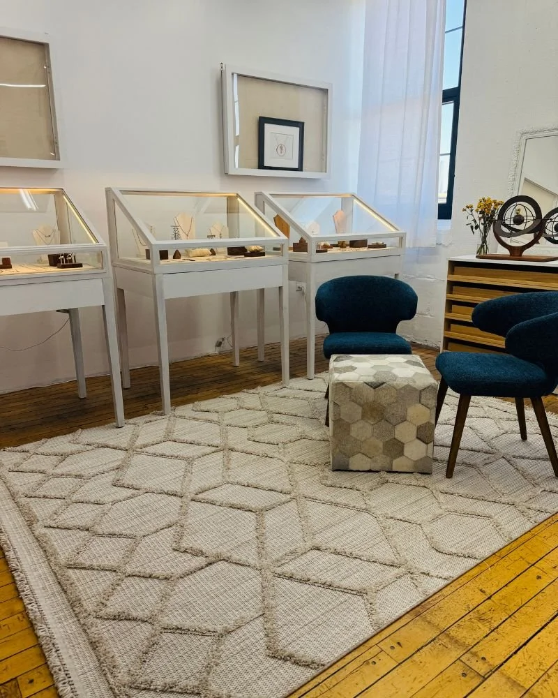 Elizabeth creates bold, simple, and geometric art jewelry and sculpture with an eclectic twist, drawing inspiration from the raw beauty of the natural world and the timeless principles of sacred geometry. She is a sculpture whose work informs her art jewelry. Elizabeth’s process involves a deep study of nature’s inherent order, from the symmetry of a flower petal to the spiral of a nautilus shell, and breaking these down into their core geometric components. The result is a minimal yet dynamic aesthetic that carries the gracefulness of its natural origins.